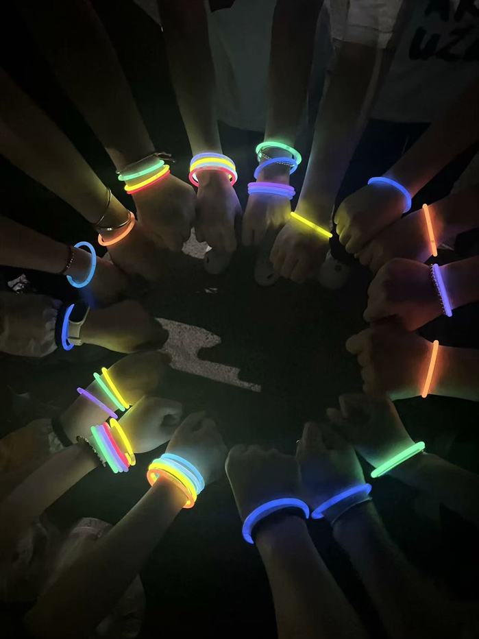 傍晚时分,参与者们陆续抵达集合点。大家脸上洋溢着期待与兴奋,在签到处领取荧光手环。在活动负责人的带领下,全体人员进行了热身运动,为即将开始的夜跑做好准备。夜跑正式开始后参与者们手持荧光棒,如点点繁星般在夜色中穿梭。大家沿着既定路线奔跑,一路上欢声笑语不断,相互鼓励、相互支持。荧光的光芒与操场的夜景交相辉映,形成了一道独特而亮丽的风景线。
