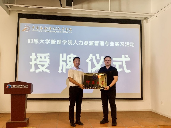 在活动现场,庄海刚副院长发表了致辞。他指出,要通过实践的方式让同学们将理论知识运用于实操当中,培养高素质、应用型人力资源管理人才。同时,庄海刚副院长还为中国海峡(晋江)人才市场授予了“永利集团3044实践教学基地”牌匾,并向曾总等四位资深HR颁发了3044永利集团客座副教授或企业导师聘书。
