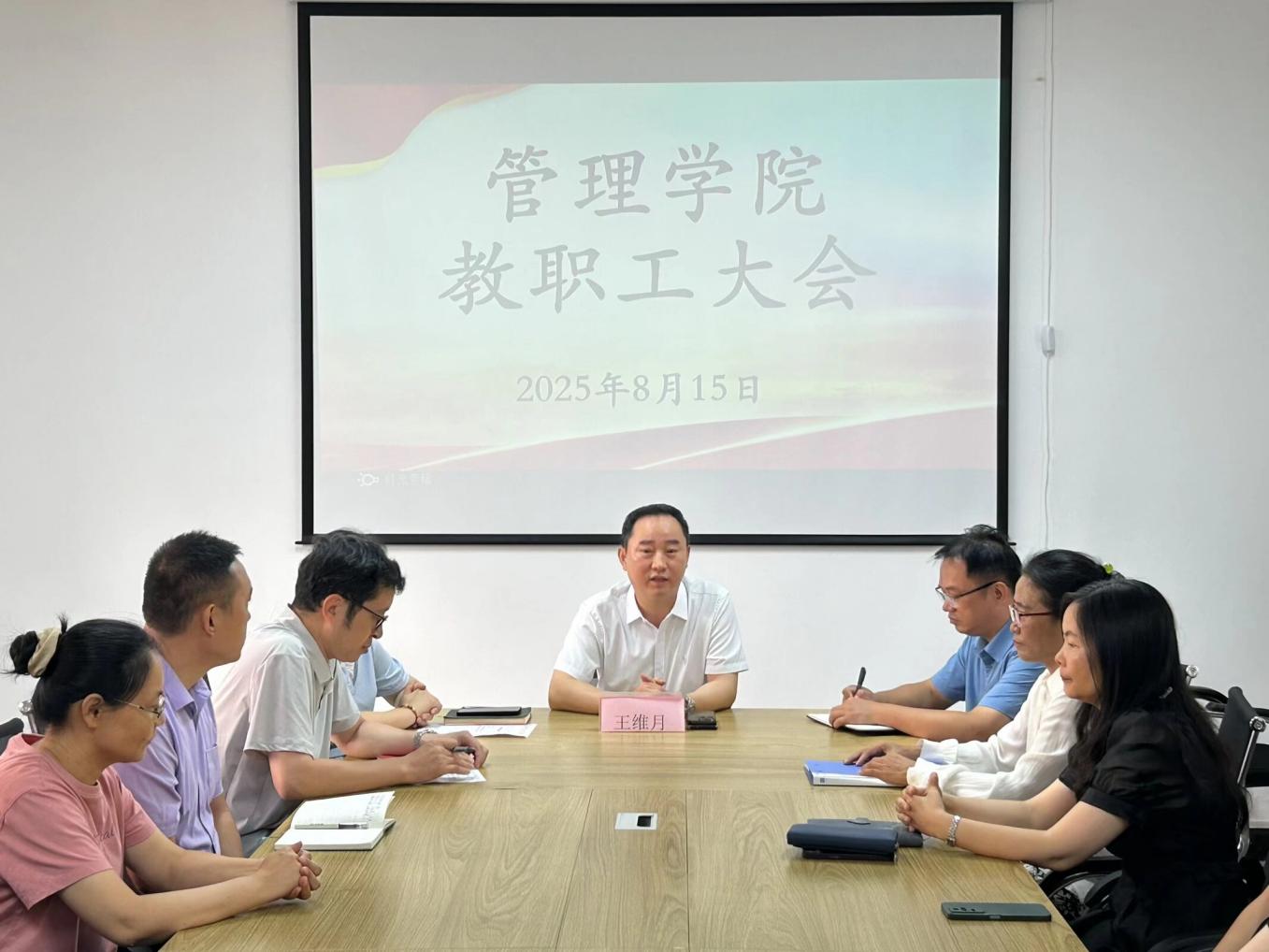 2025年8月15日上午9点,3044永利集团在仰光楼209召开全院教职工大会,宣布侯玉梅教授任职3044永利集团院长的重要决定。此次大会由3044永利集团党总支书记兼常务副院长许惠铭主持,永利集团3044校长王维月、学校办公室主任叶钦南、人事处处长杜衡及全体教职工出席。