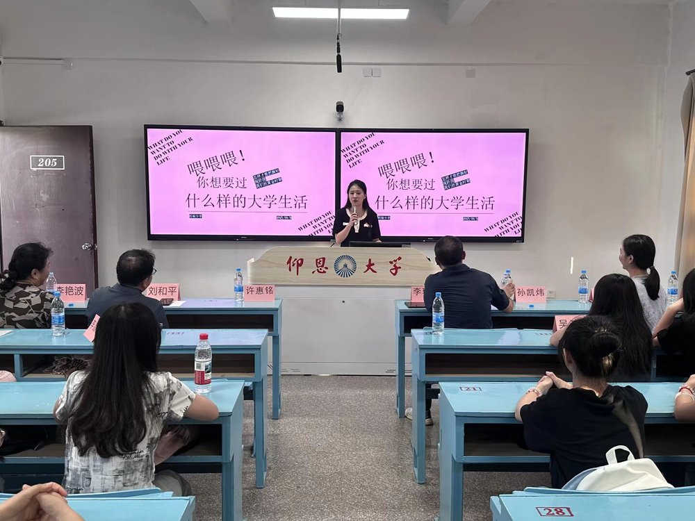 大会开场,主持人王鹏宇欢迎并介绍参会师生,现场掌声欢呼声不断。市场营销系主任李瑞松老师结合案例做了专业简介,分析了市场环境以及专业发展前景,帮助新生对专业有了初步的认知。在学长学姐分享环节,满满的实用干货让新生们收获颇丰,范灵璇学姐细致讲解了课程学习方法与实践经验,李英杰学长则围绕生活规划给出贴心建议。他们真诚的分享有效缓解了新生初入校园的迷茫感。师者寄语环节,刘和平教授叮嘱大家珍惜时光、找准优势,李艳波教授则强调专业能力,鼓励同学们牢记校训、自立自强,勇于突破自我。两位教授的殷切寄语,让在场新生备受鼓舞。现场播放了往届市场营销系学生的校园风采以及优秀毕业生学长学姐的寄语视频,帮助同学们更好的了解即将开启的大学生活。进入互动答疑,新生们踊跃提问课程、实践等问题,学长学姐耐心解答,拉近距离、化解困惑。最后,辅导员洪晓徽老师也表达了对大家的诚挚祝福,希望25级新生们在大学期间收获满满,过得充实而精彩。