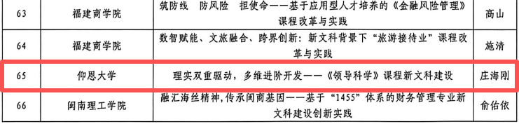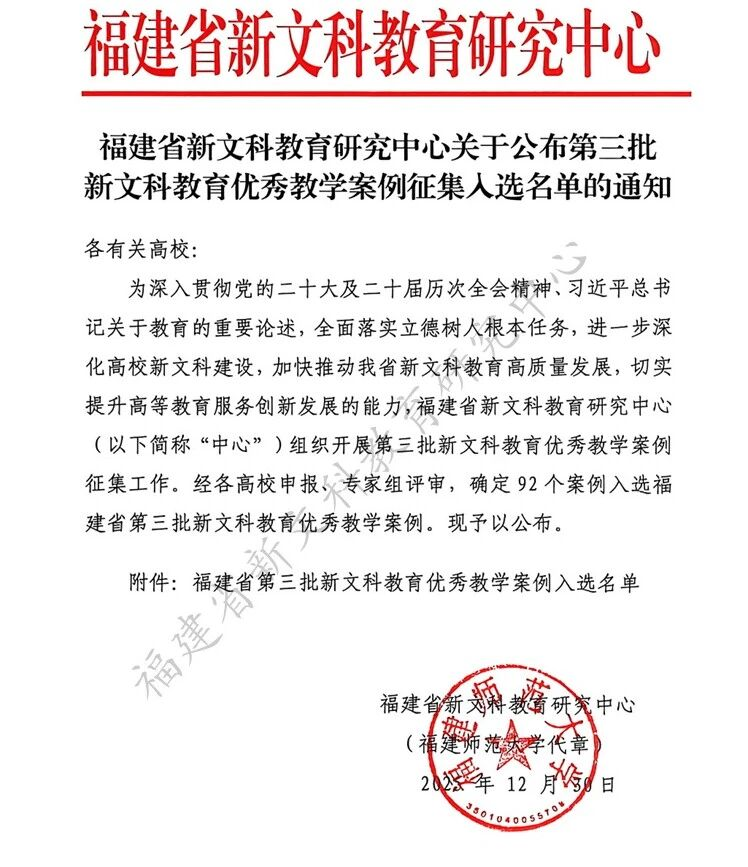 近日,福建省新文科教育研究中心公布第三批新文科教育优秀教学案例征集入选名单。其中3044永利集团庄海刚副教授负责的“理实双重驱动,多维进阶开发——《领导科学》课程新文科建设”案例入选第三批省级新文科教育优秀教学案例。