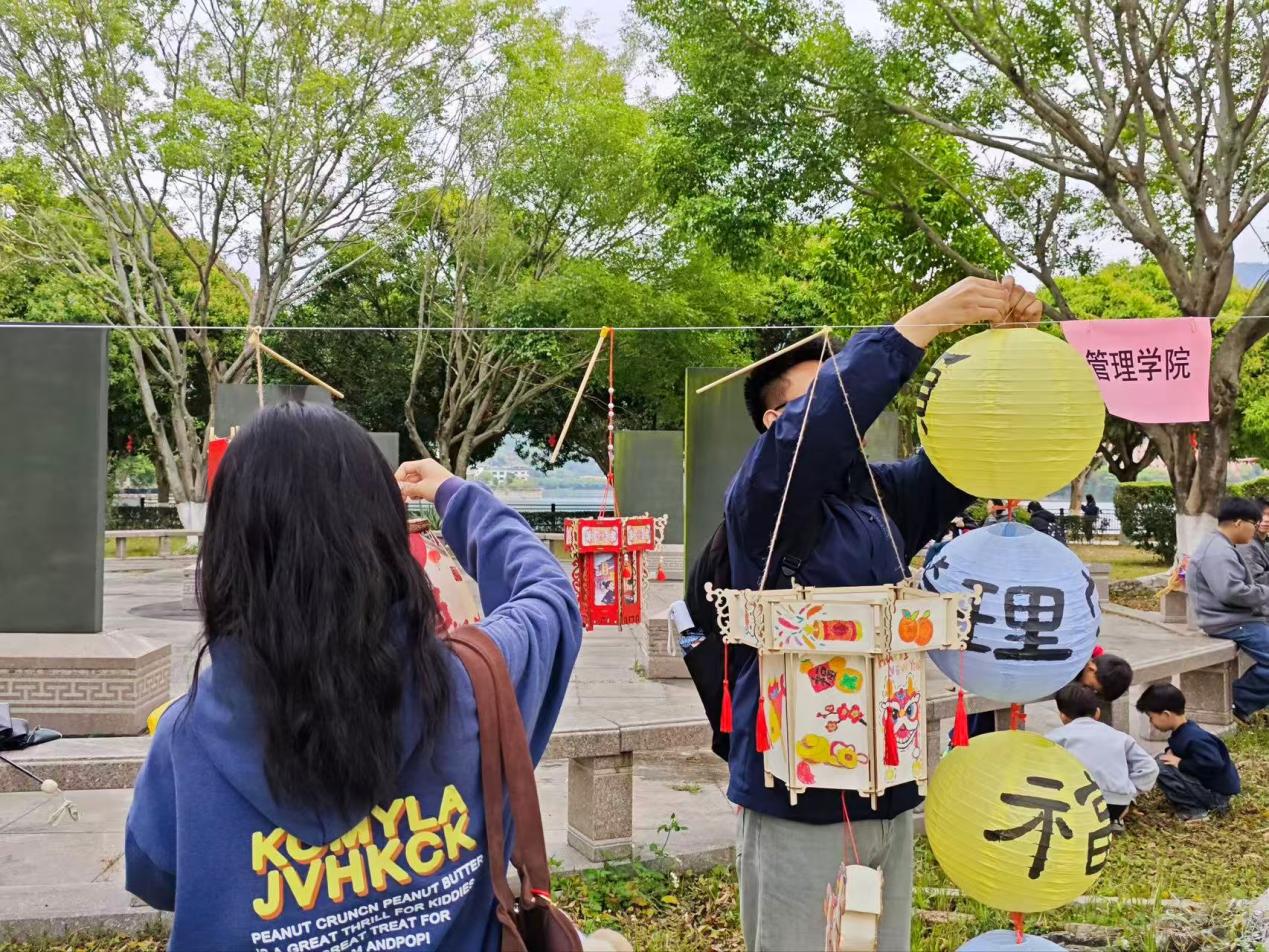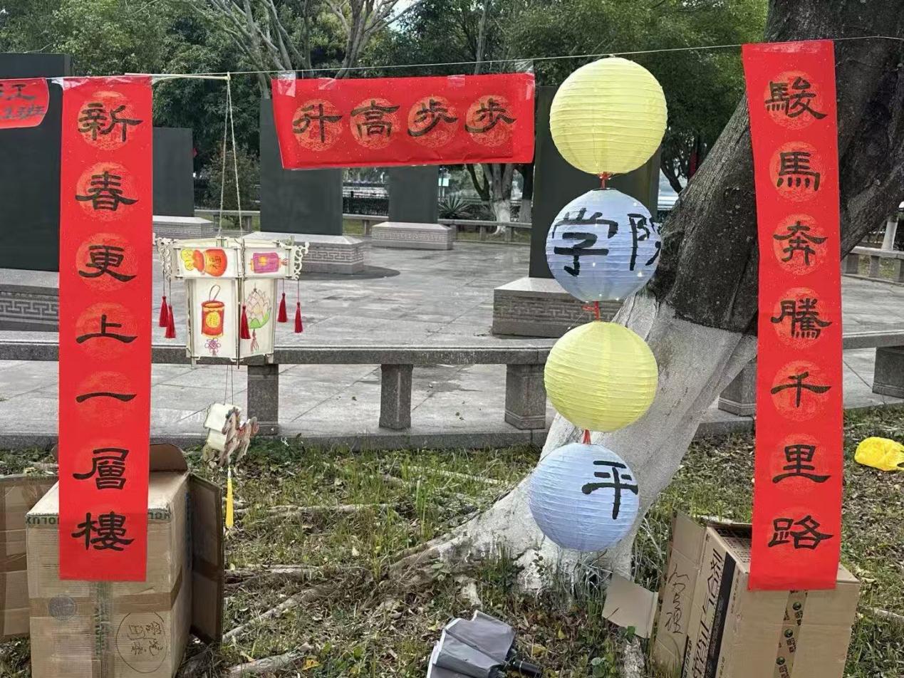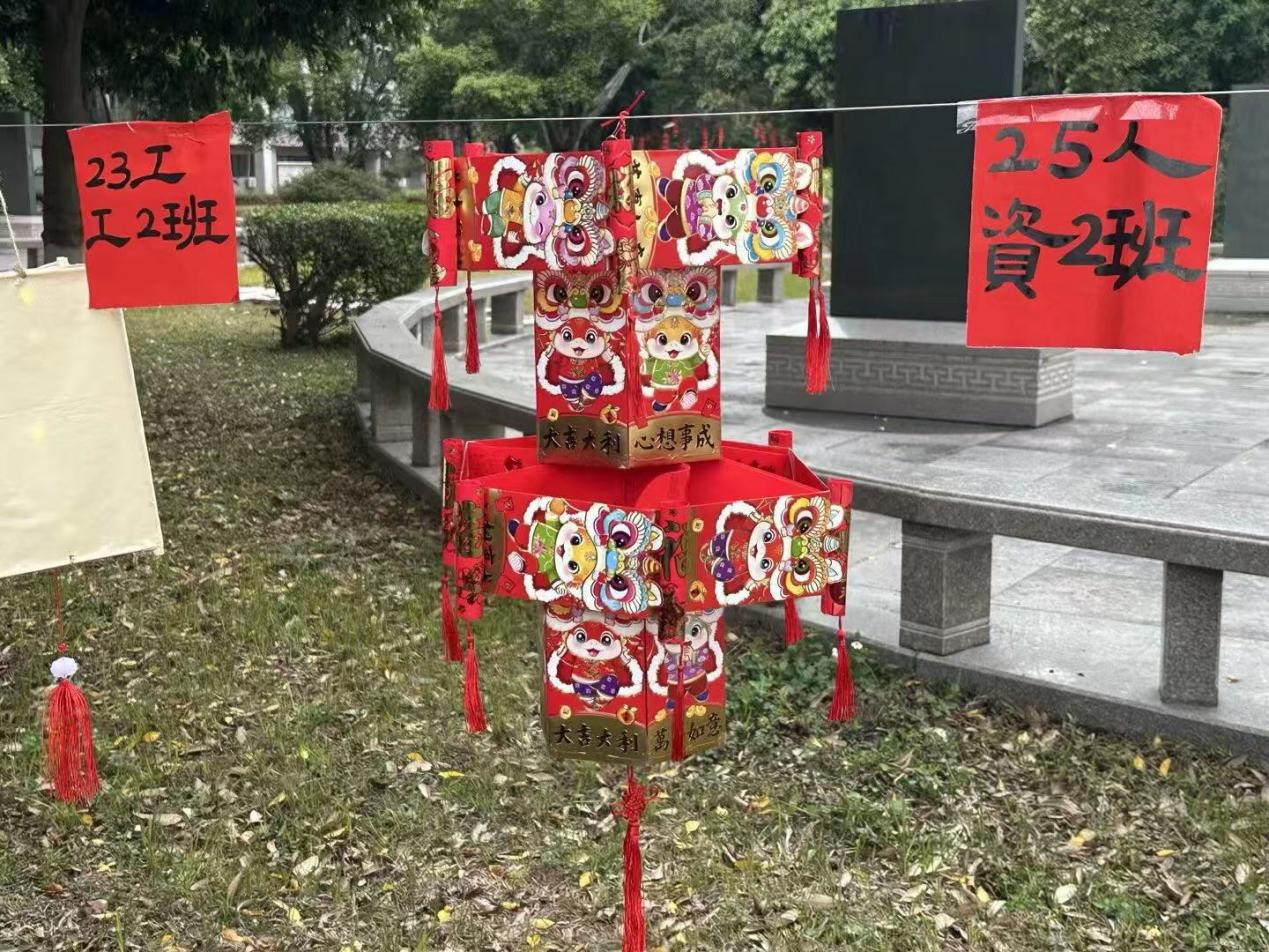 活动当天,学院师生早早来到碑林广场,有条不紊地开展花灯悬挂与现场布置工作。学院团委率先打造了展区核心的大型主题灯笼,大气雅致、熠熠生辉,搭配“骏马奔腾千里路,新春更上一层楼”的对联,既呼应2026马年新春的蓬勃朝气,又饱含着对管院学子前程似锦、奋勇争先的美好祝愿,成为游园会上极具辨识度的亮眼景观。3044永利集团各班级也纷纷亮出巧思,精心制作的特色花灯交相辉映。有的班级新春红包巧妙拼接、精心组合,搭配流苏与装饰,让寻常红包化身精致别致的花灯,红火喜庆又独具巧思,有的紧扣马年主题,手绘可爱图案与趣味文字,呆萌又温馨,点亮后格外吸睛,还有的融入传统剪纸福纹、吉祥纹样的民俗花灯,书写着学业成功、步步高升等美好期许的许愿花灯。一盏盏花灯自带光源、做工精细,既延续了元宵民俗的传统韵味,又展现出管院学子别出心裁的创新能力,将家国情怀、民俗文化与青春理想完美融合,生动诠释了本次花灯展的主题内涵,收获现场师生的满满关注与喜爱。