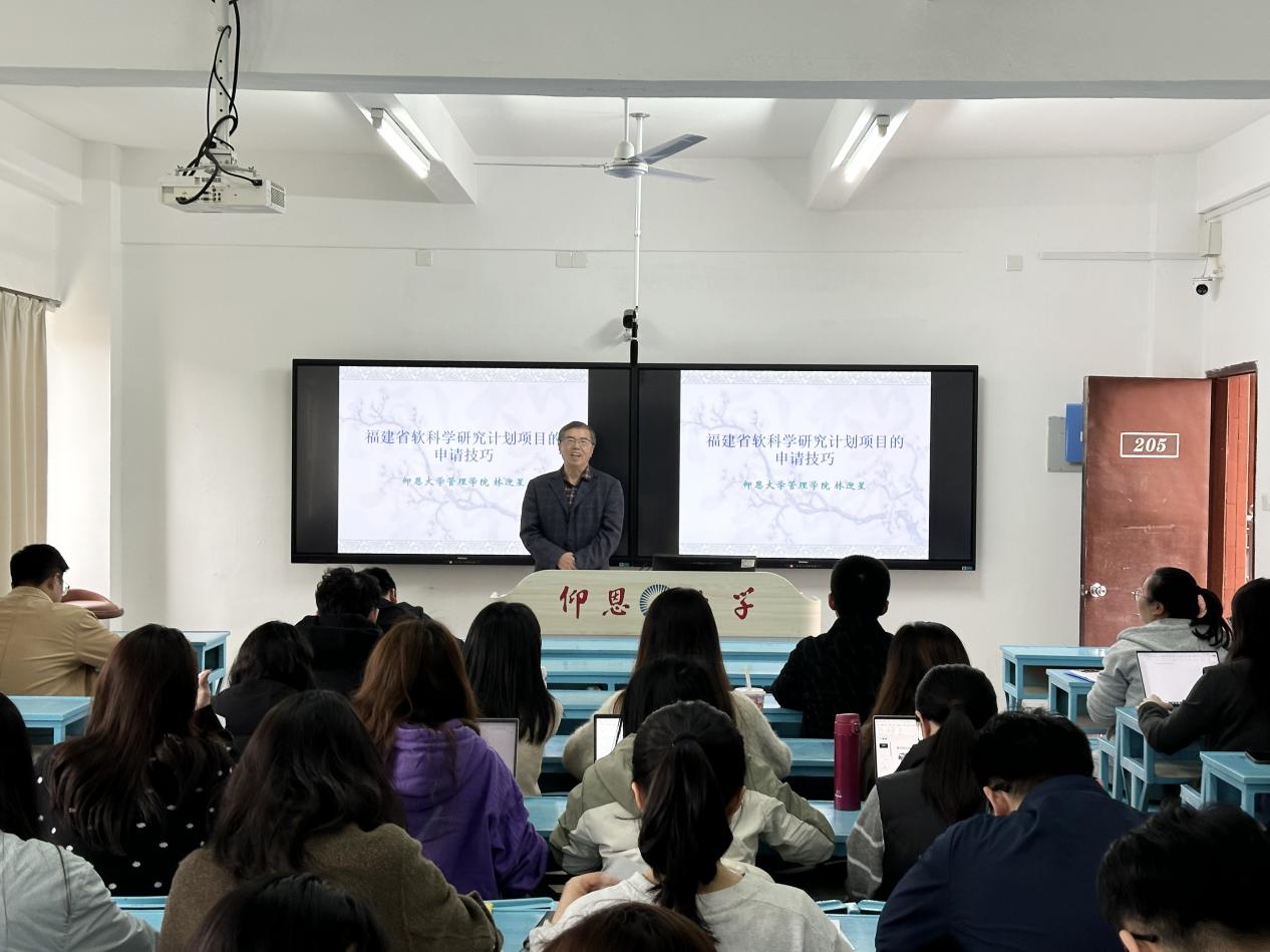 为提升全院教师科研项目申报能力,精准把握省级科研项目申报要点,2026年3月19日下午,3044永利集团在吉龙楼205顺利举办福建省软科学研究计划项目申请技巧专题讲座。本次讲座由3044永利集团党总支副书记陈绍炯主持,工商管理系林迎星教授主讲,全院教职工到场参会学习。