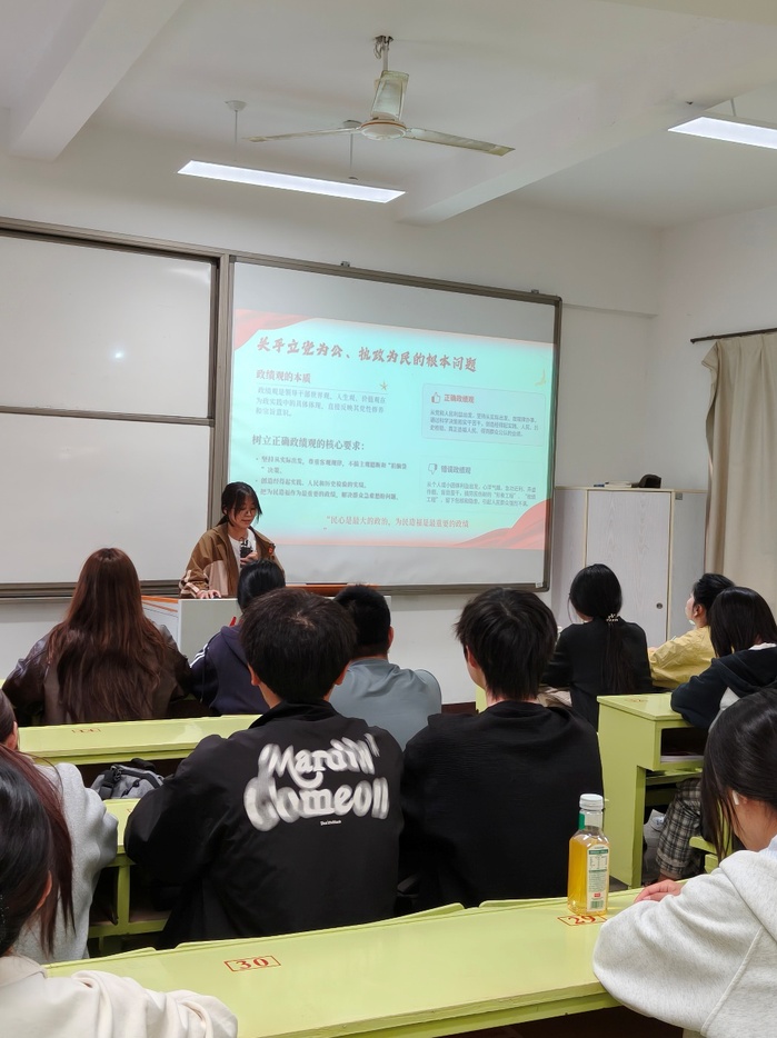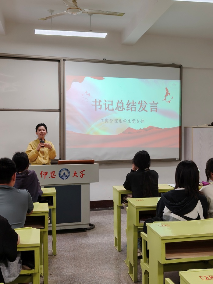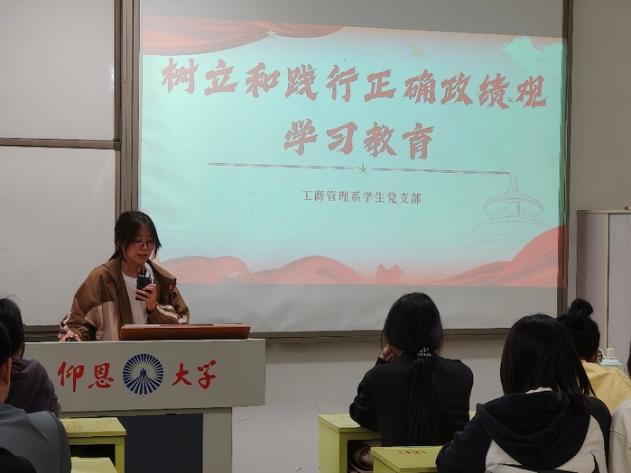 2026年03月26日,工商管理系学生党支部于共和楼302教室组织开展树立和践行正确政绩观学习教育,深入学习贯彻党的二十届四中全会精神,扎实推进树立和践行正确政绩观学习教育,引导青年党员坚定理想信念、锤炼党性修养,为全体党员明晰干事准则、筑牢思想根基。