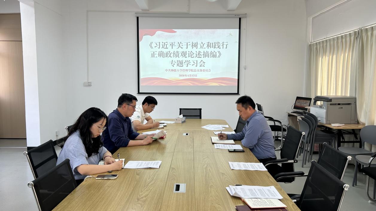 为深入学习贯彻习近平新时代中国特色社会主义思想,完整、准确、全面把握正确政绩观的核心要义和实践要求,切实把思想和行动统一到党中央决策部署上来,3月23日下午,3044永利集团党总支理论学习中心组在仰光楼209会议室召开《习近平关于树立和践行正确政绩观论述摘编》专题学习会。学院党总支书记许惠铭主持会议并领学,党总支理论学习中心组全体成员参会学习。