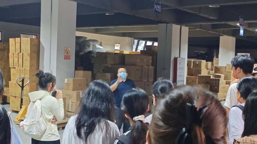 离开生产车间后,同学们前往企业仓储区域实地考察。负责人结合仓库管理、货品周转、渠道配送等实际场景,与同学们面对面交流市场营销在市场拓展、客户开发、渠道建设、库存协同中的具体应用,把课本理论与企业实操紧密结合,让大家清晰认识营销工作在产业链中的重要作用。