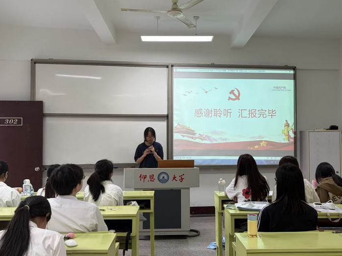 本次党课紧密结合新时代青年成长特点与学生党员教育要求,围绕思想引领、身心健康、安全防范、使命担当等核心内容展开,主题鲜明、重点突出、贴近学生实际,为全体党员带来一堂兼具思想深度与实践指导意义的专题教育课。党课上,吴思颖同志依次从明辨时代大势、筑牢思想防线、关注身心调适、抵御风险侵蚀、践行青年担当五个方面进行系统讲解。她结合健康中国战略与青年发展规划,深入分析当前大学生在学业、就业、网络环境下面临的身心压力与思想困惑,引导大家加强理论学习、坚定理想信念、学会情绪调节、养成健康生活习惯,同时提高网络安全与纪律规矩意识,自觉抵制不良思潮与各类风险诱惑。最后,吴思颖同志作总结发言,勉励全体学生党员以此次党课为新起点,坚持身心同健康、知行相统一,自觉发挥先锋模范作用,以强健的体魄、健康的心态、坚定的信念投入学习与生活,不负时代、不负韶华,在新时代新征程中展现青年党员的担当与风采。