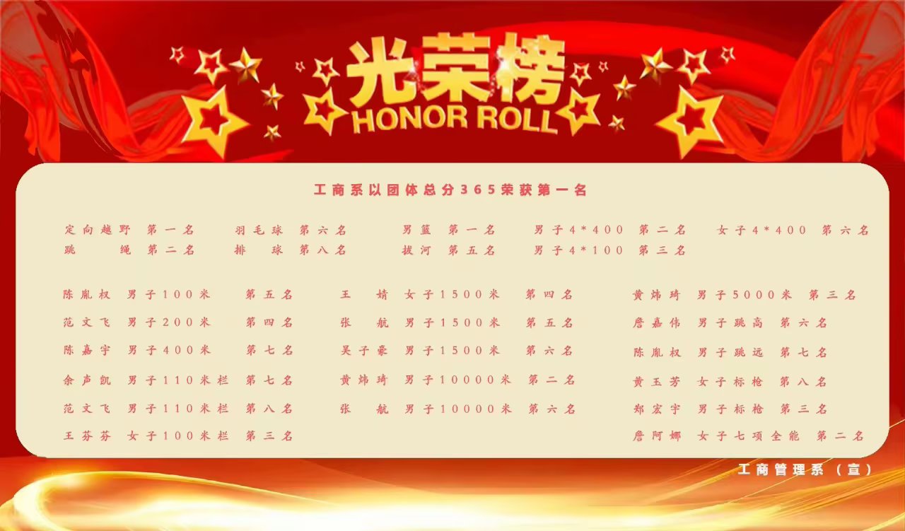 恭喜工商系荣获运动会团体总分第一